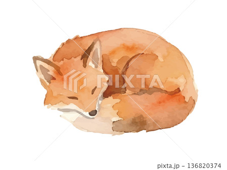 Red fox sleeping curled up, eyes closed and tail wrapped around its face