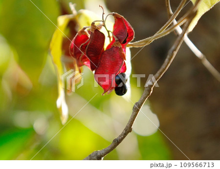 タンキリマメの赤いサヤと黒い実