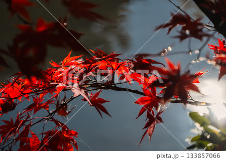 池の畔紅葉と光の輪