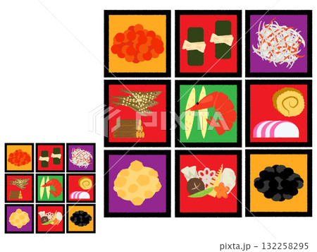重箱に美しく詰められた伝統的なおせち料理の豪華な正月写真