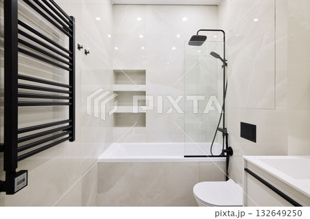 An Elegant and Modern Bathroom Design Featuring Both Shower and Bathtub for Luxury and Comfort