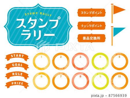 スタンプラリー 見出し、飾り罫、イラストパーツのセット