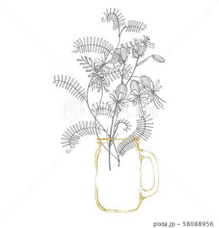 Collection of beautiful wild herbs, herbaceous flowering plants, blooming flowers, isolated on white background. Hand drawn detailed botanical illustration