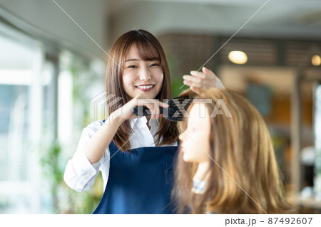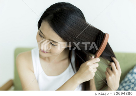 若い女性 ヘアケア