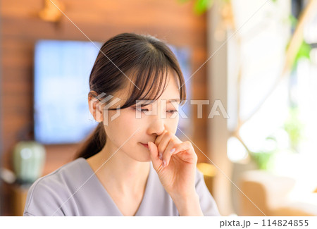体調不良 (病気 病人 女性 風邪 インフルエンザ 発熱 花粉症 pm2.5 食中毒 黄砂 寒気)