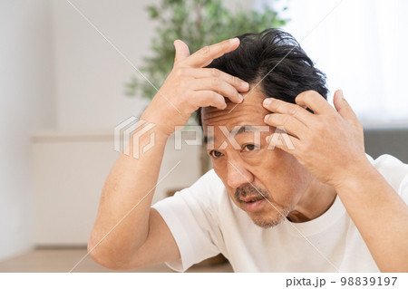 髪を気にするミドル男性