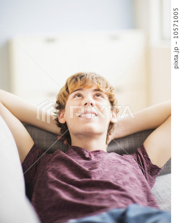 Teenage boy (14-15) laying down and looking up