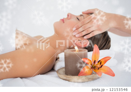 Composite image of smiling brunette enjoying a head massage