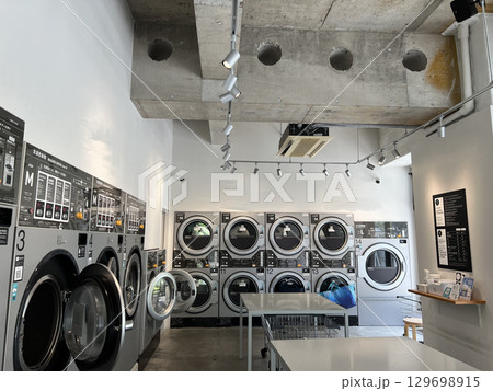 調整中の洗濯機が多い老朽化したコインランドリーの店舗