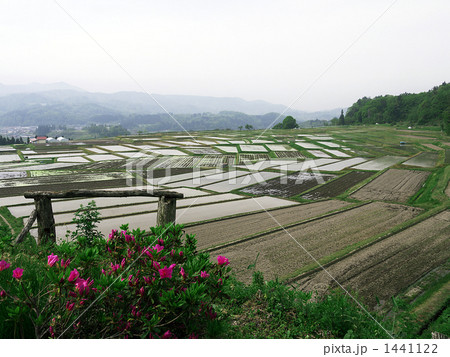 棚田と躑躅