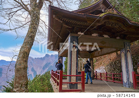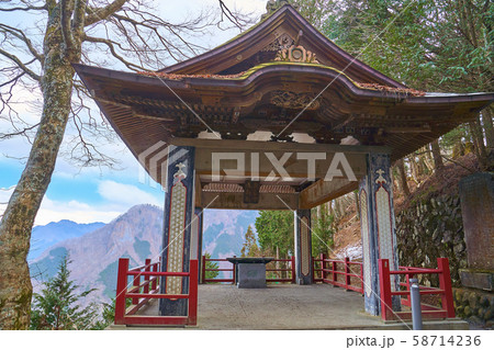 埼玉県秩父市の三峯神社の遥拝殿(ようはいでん)から妙法ヶ岳方面を見る