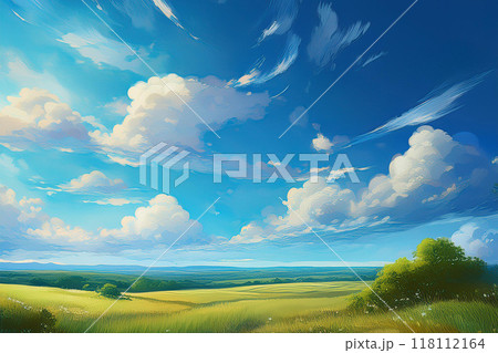 【AI生成画像・AIイラスト】真夏の草原と雲