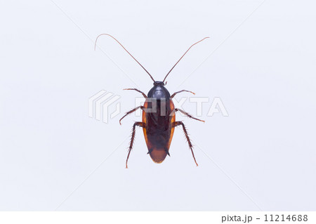 ひっくり返ったゴキブリの白背景写真