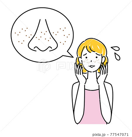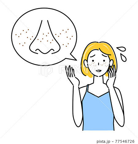 スキンケア 顔のお肌トラブルで困っている女性 小鼻の毛穴の黒ずみ そばかす イラスト シンプル ベク