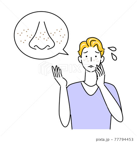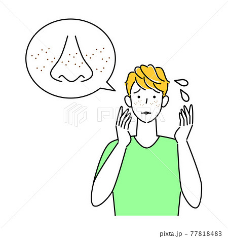 スキンケア 顔のお肌トラブルで困っている男性 小鼻の毛穴の黒ずみ そばかす イラスト シンプル