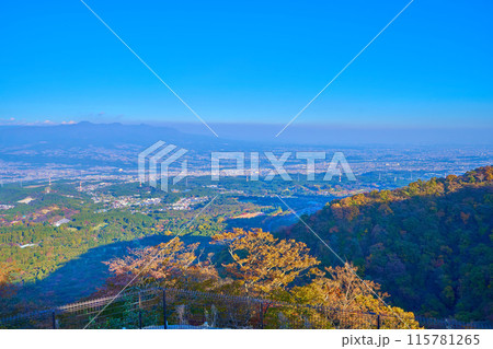 秋の群馬県渋川市伊香保町の上ノ山公園のときめきデッキ(展望台)から東側の眺望