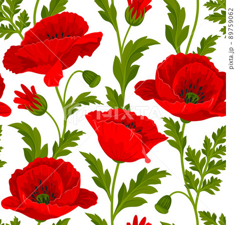 Seamless pattern with red poppy flowers. Design for packaging, label and greeting card.
