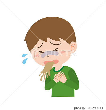 風邪をひいて嘔吐する子どものイラスト