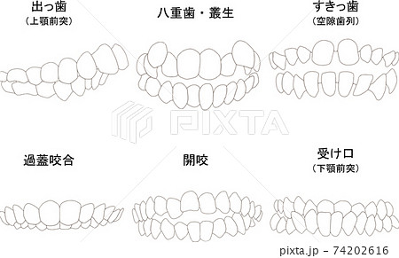 歯列矯正治療の対象になる代表的な症例線画セット デッサン調