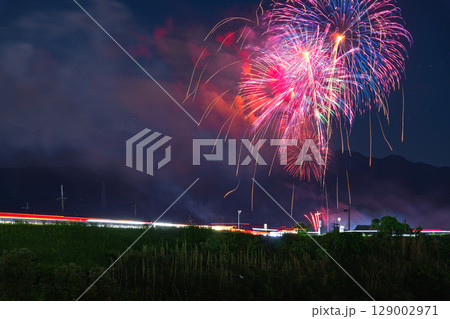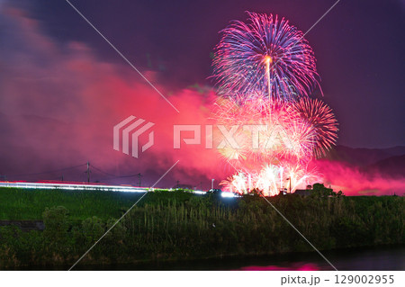 夏の夜空に映える夏の風物詩 打ち上げ花火風景 (鮎祭り花火大会 甲佐町)