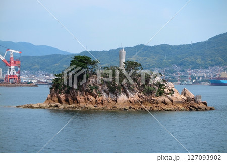 フェリーから眺めた呉の風景:呉軍港監視所が設置されていた小麗女島