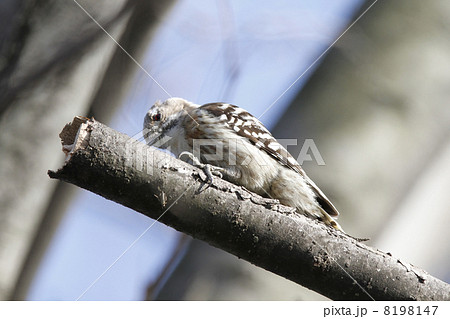 枯れ枝にとまる野鳥【コゲラ】保護色