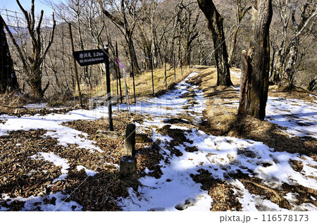 雪の丹沢主稜 西丹沢の小笄 犬越路隧道分岐