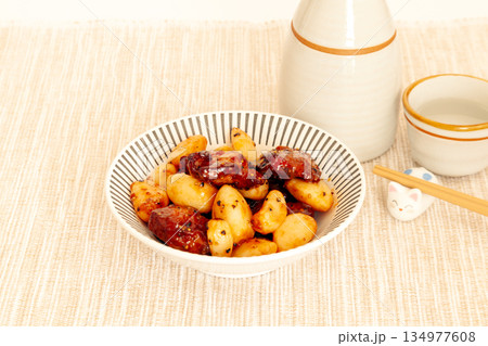 チキンとニンニクのスタミナ炒め(こしょうダレ)と日本酒
