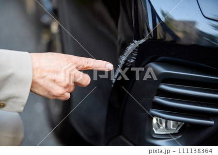 車についた擦り傷を自分で修理しようとしている中高年男性