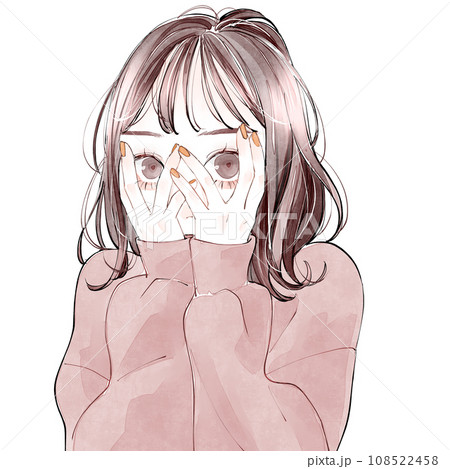 シンプル イラスト チラ見する女性