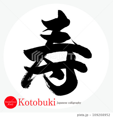 筆文字素材の手書きの【寿】墨で書いた漢字のイラスト