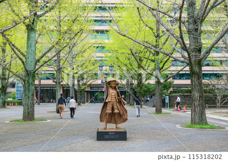 Luffy Monkey D. gold statue at Kumamoto office, Kyushu