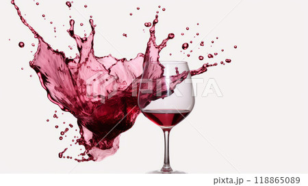Glass of wine and splashes of wine on a white background.