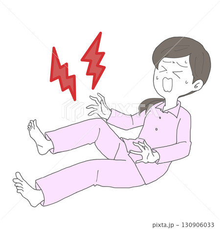 就寝中にこむら返りになって痛がる女性 イラスト