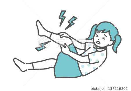 足の痛みやこむら返りで苦しむ女の子(子供)のイラスト