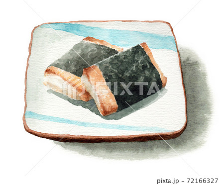 アナログ水彩磯辺巻磯辺焼餅角皿