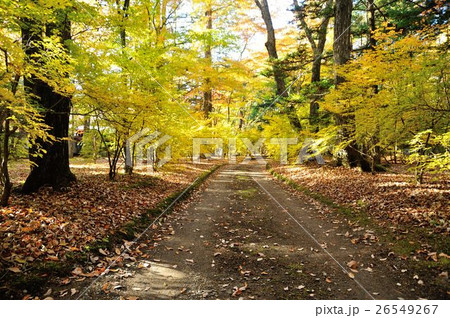紅葉の御岳県立自然公園 油木沢の落ち葉が敷き詰められた登山道