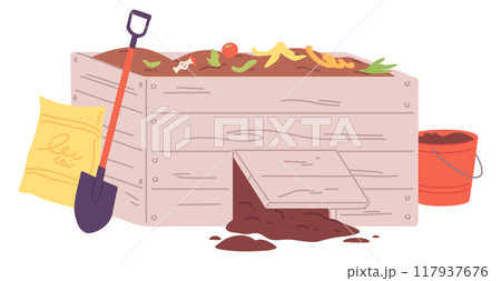 Canvas bag with garden black soil. Farming or gardening hobby. Organic fertilizer or compost. Vector illustration in flat cartoon style. Zero waste concept