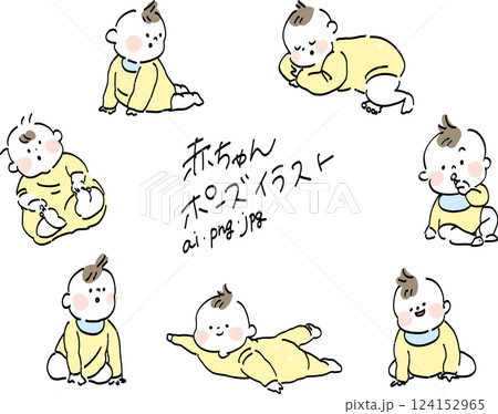 シンプルな赤ちゃんのいろんなポーズのカラーイラスト