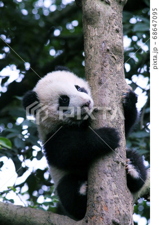 木によじのぼるパンダの子ども Little Giant Panda Climbing a Tree