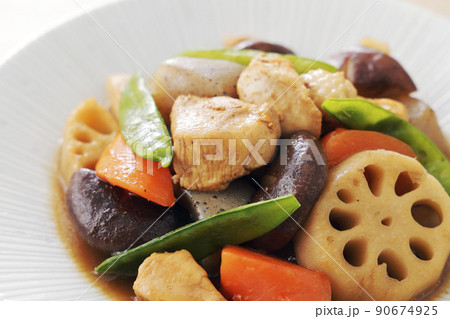 蓮根と鶏肉と椎茸を使った和風煮物