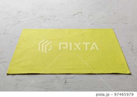 Perspective view of green tablecloth for food on cement background. Empty space for your design