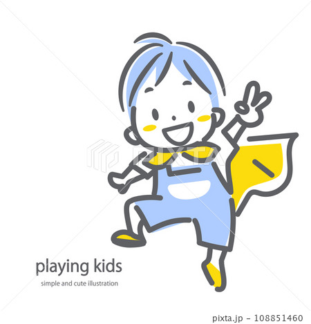 ごっこ遊びを楽しむ男の子 シンプルでかわいい線画イラスト