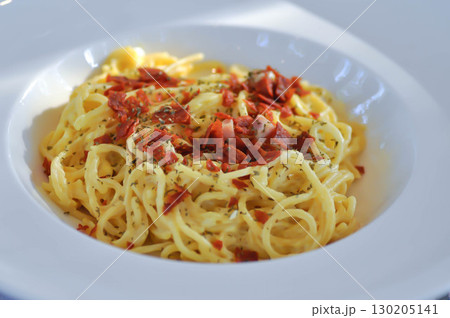 spaghetti or spaghetti carbonara, pasta carbonara.