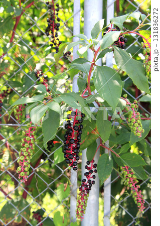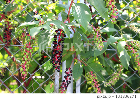 黒紫色の実をつけたヨウシュヤマゴボウ