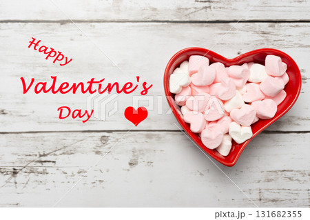 真っ赤なハート型のココット皿とハート型のマシュマロ