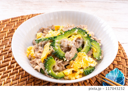 夏野菜ゴーヤと豚肉の香ばしいごま油と黒コショウの効いたピリ辛炒め