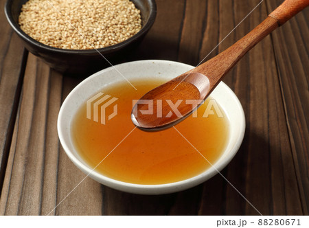 お皿にそそがれているごま油