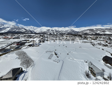 天神坂から見る白馬連峰と白馬村の大パノラマ 長野県白馬村(ドローンによる空撮)