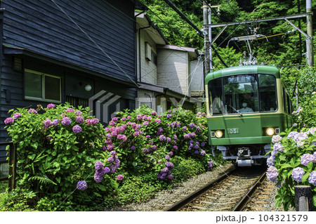 鎌倉市 あじさいと江ノ電 御霊神社付近